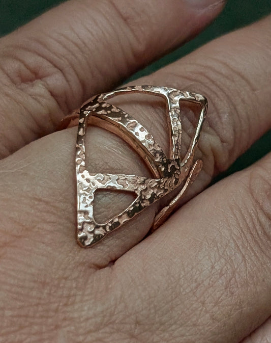 Large Textured Copper Adjustable Ring - Reclaimed Wire