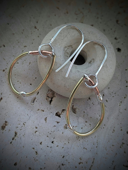 Teardrop Mixed-Metal Earrings with Sterling Silver, Salvaged Brass & Washed-up Copper
