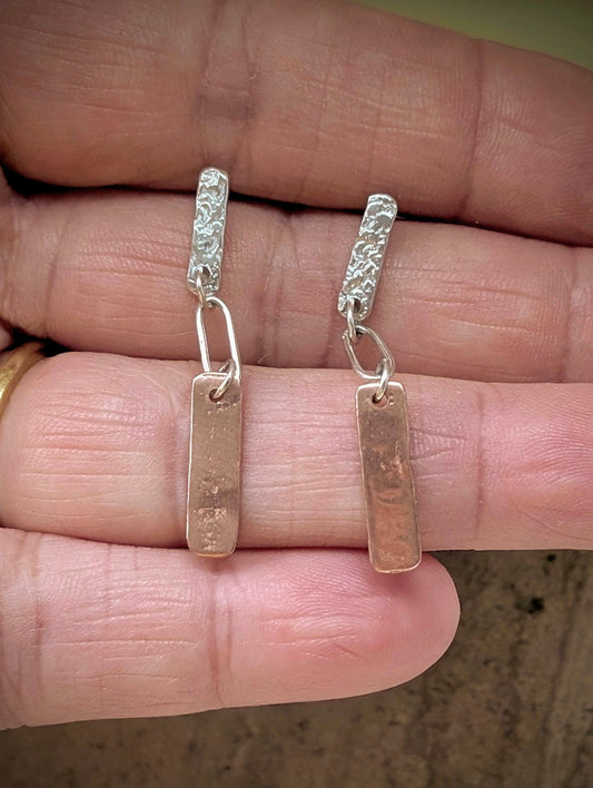 Washed-up Copper & Textured Silver Earrings