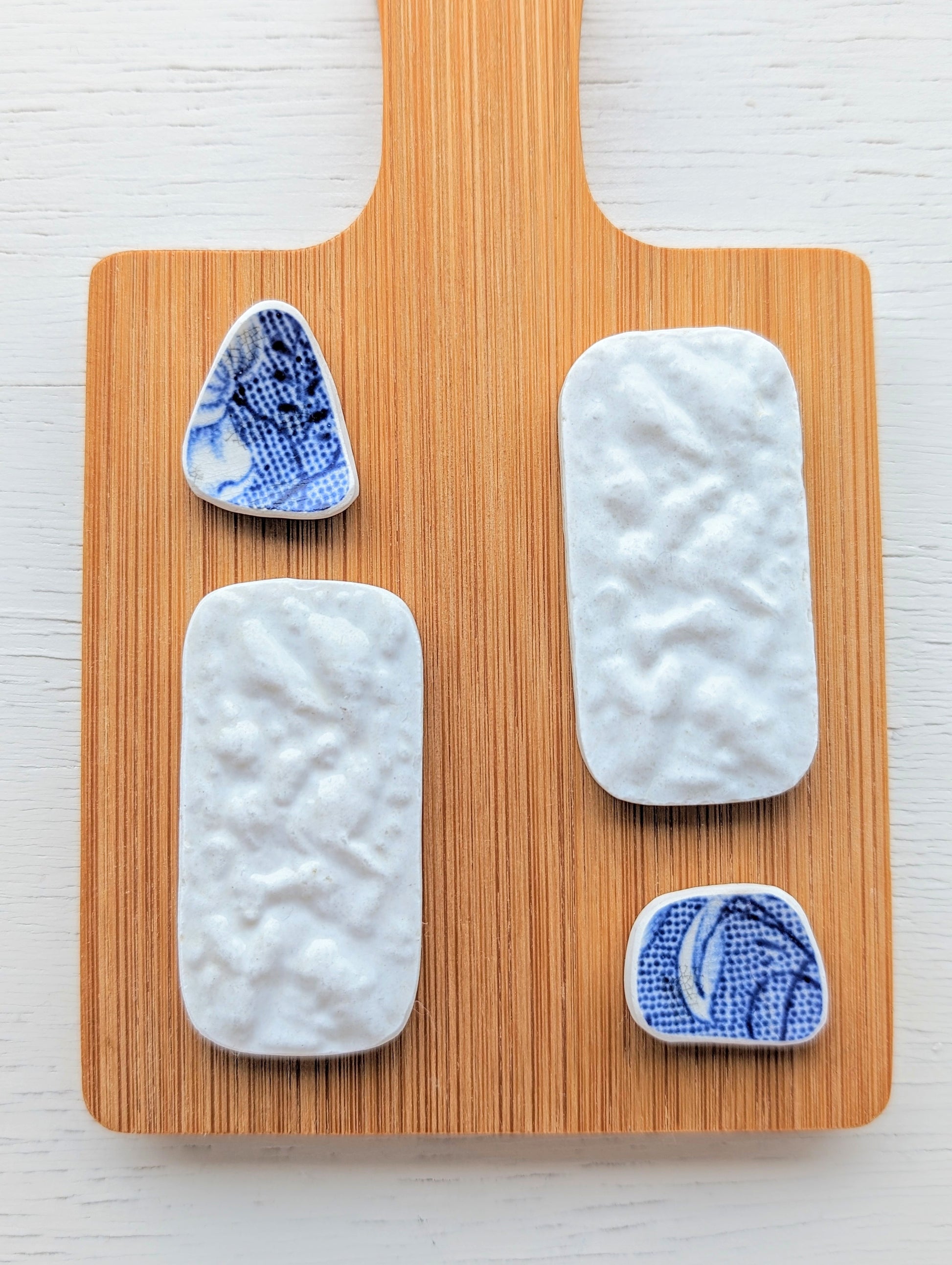 "Ceramic Tile" odd pairs: Hand-shaped Edinburgh Sea-Pieces - Sea Glass & Sea Pottery