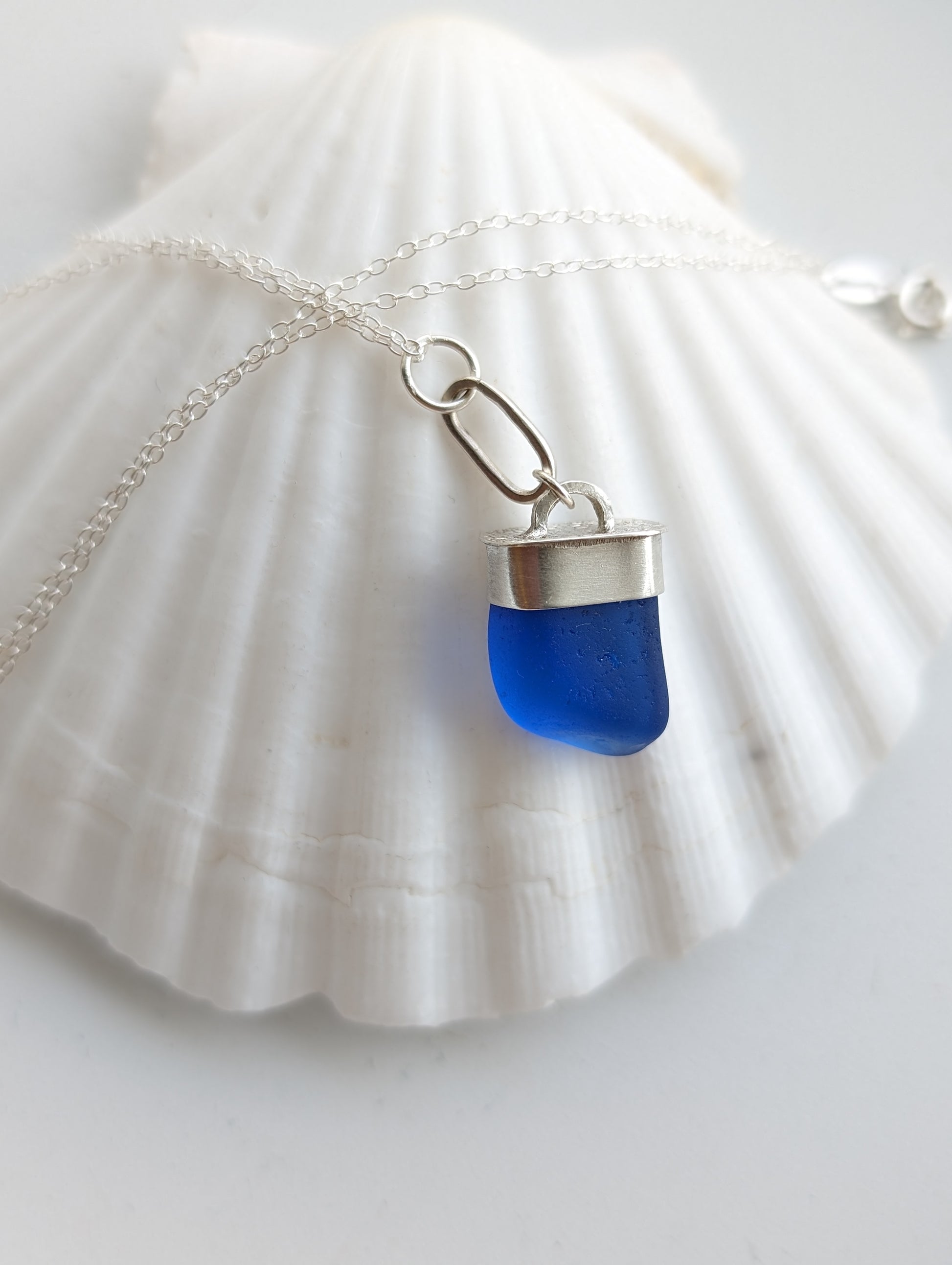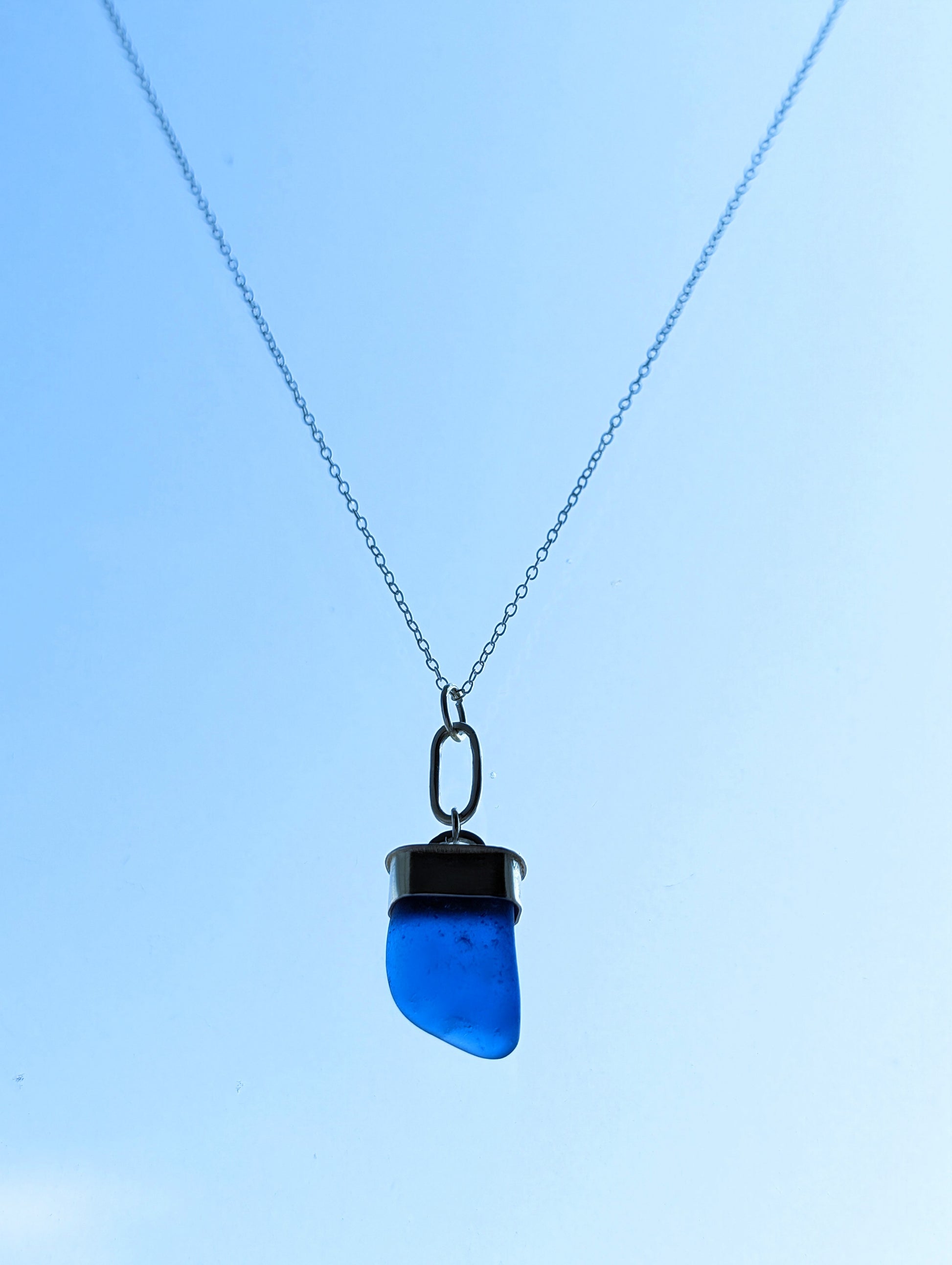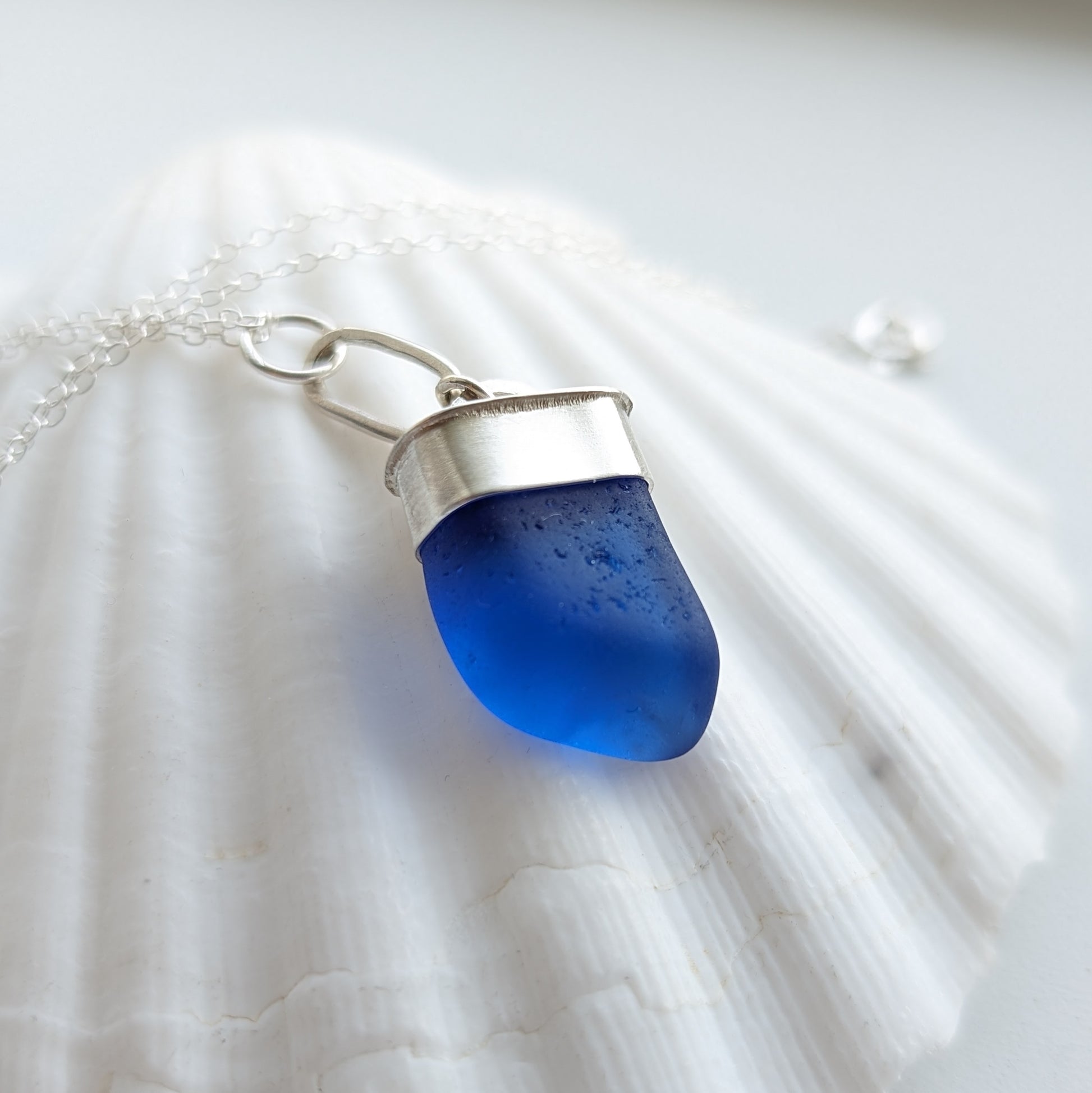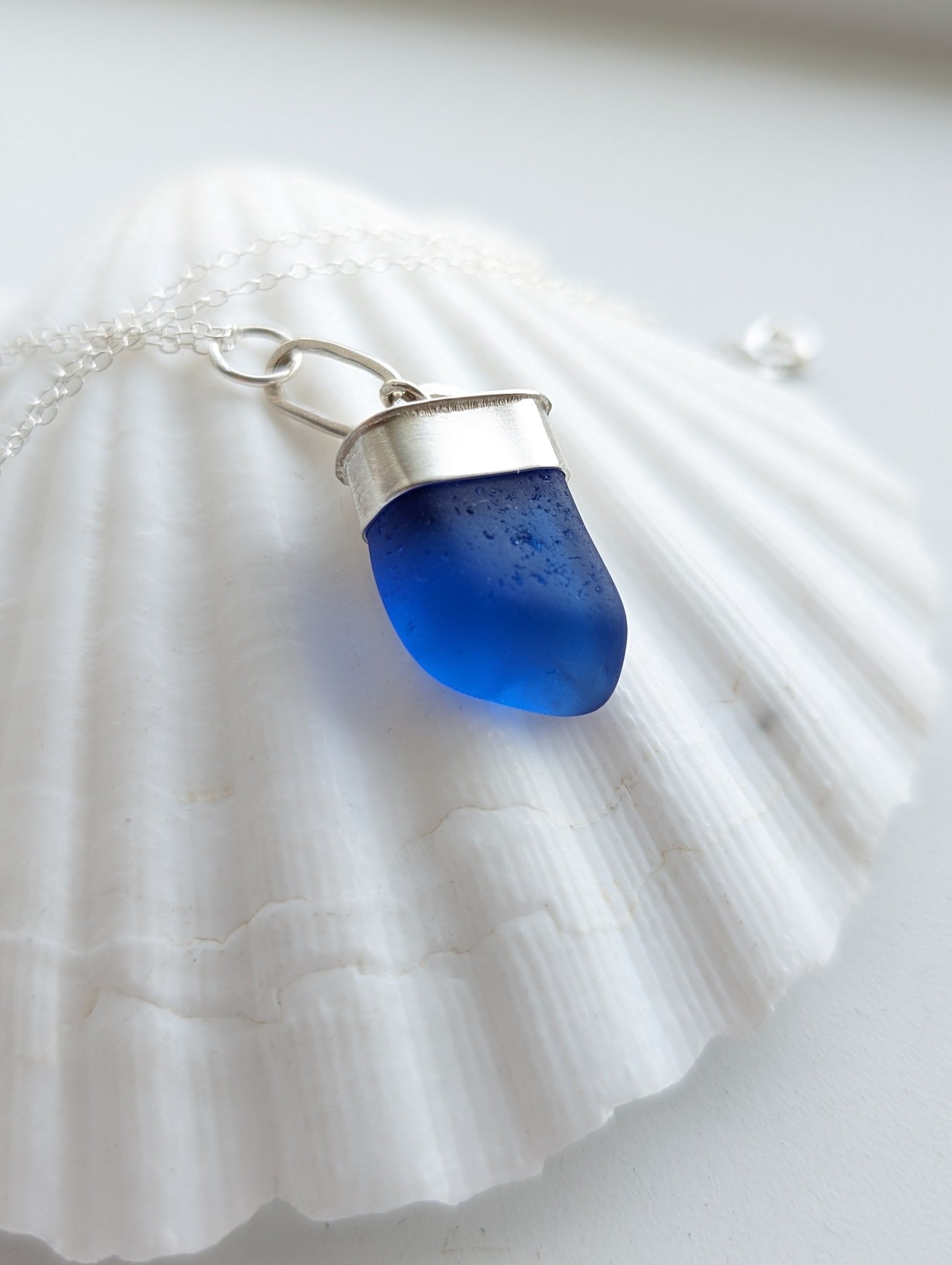 Cobalt Blue Edinburgh Sea Glass Sterling Silver Necklace