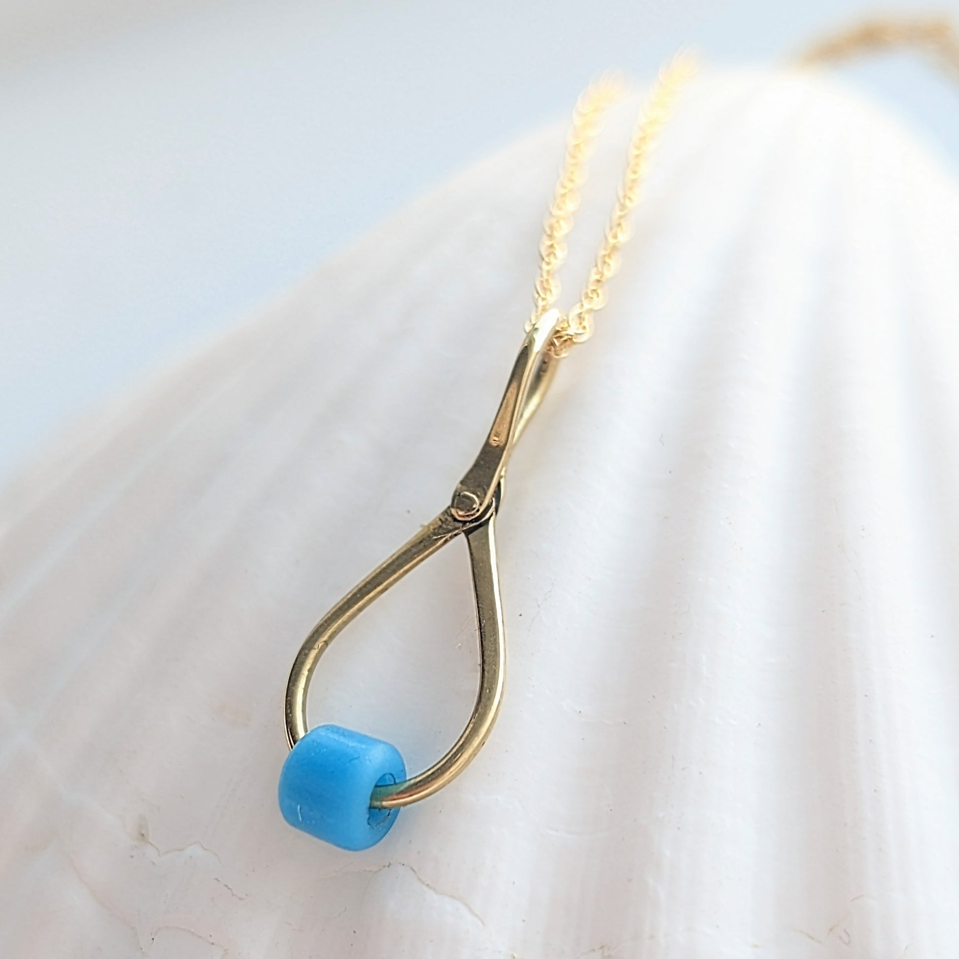 Glass Sea Bead on Riveted Brass Hoop Necklace