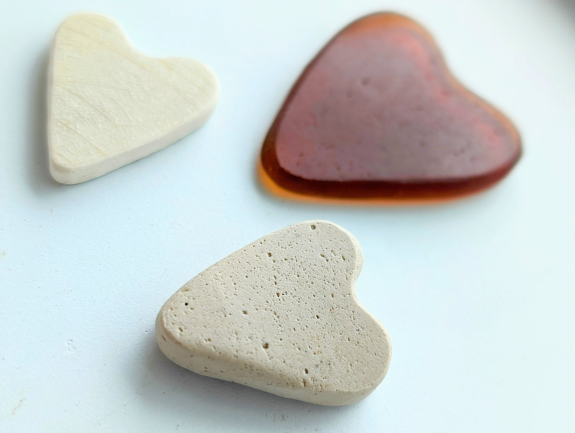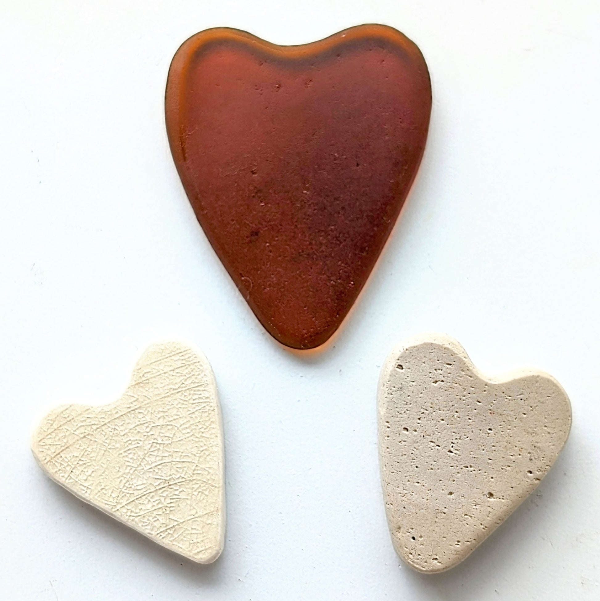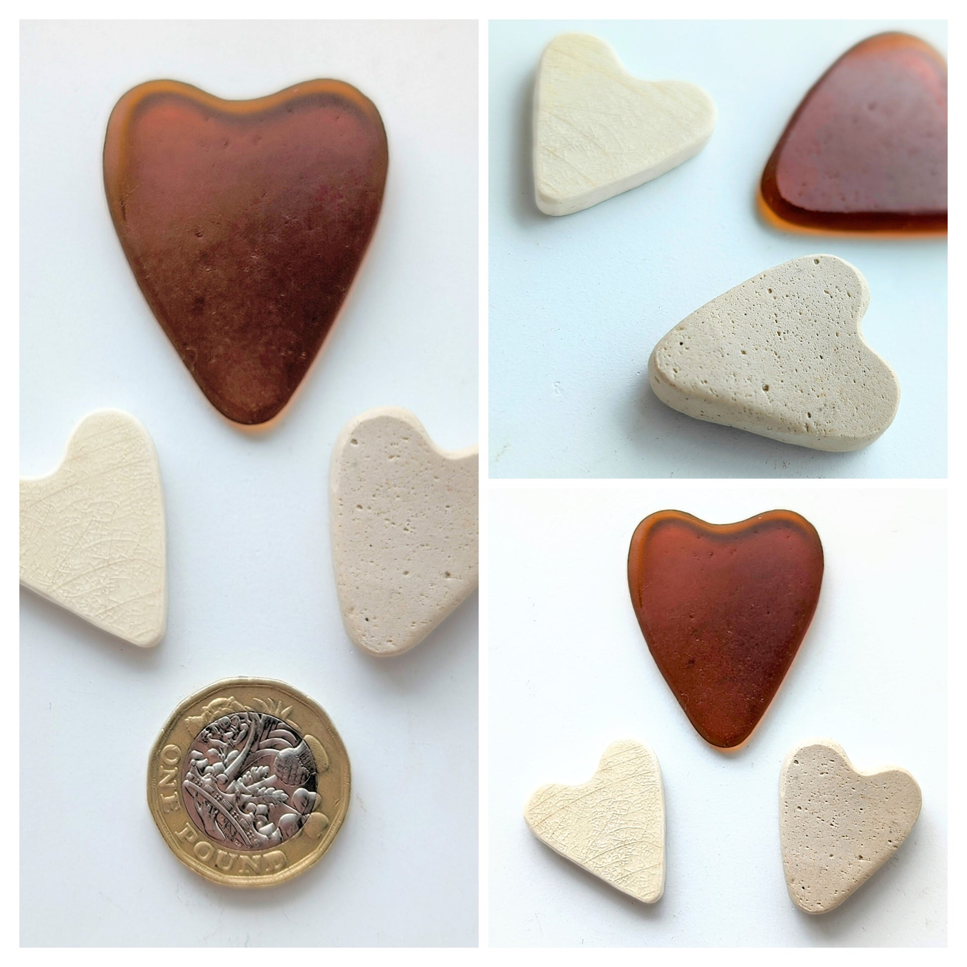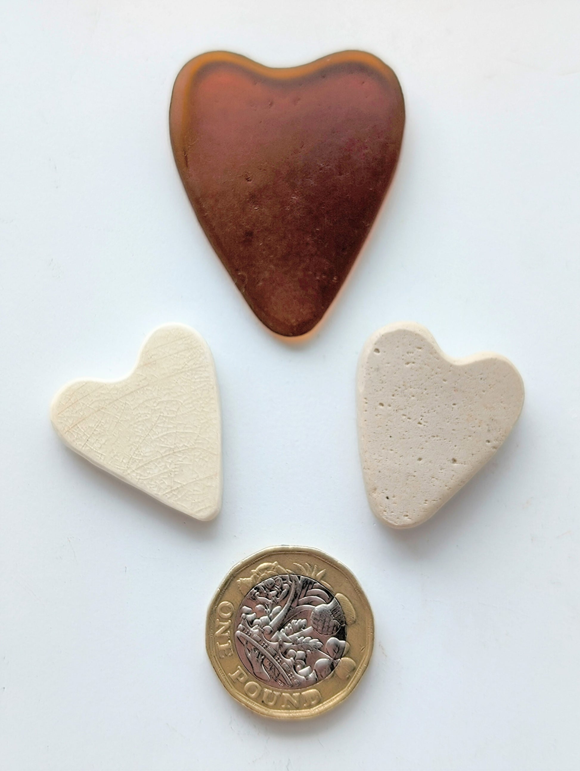 Hand-shaped Edinburgh Sea-Pieces. Sea Glass & Sea Pottery Hearts