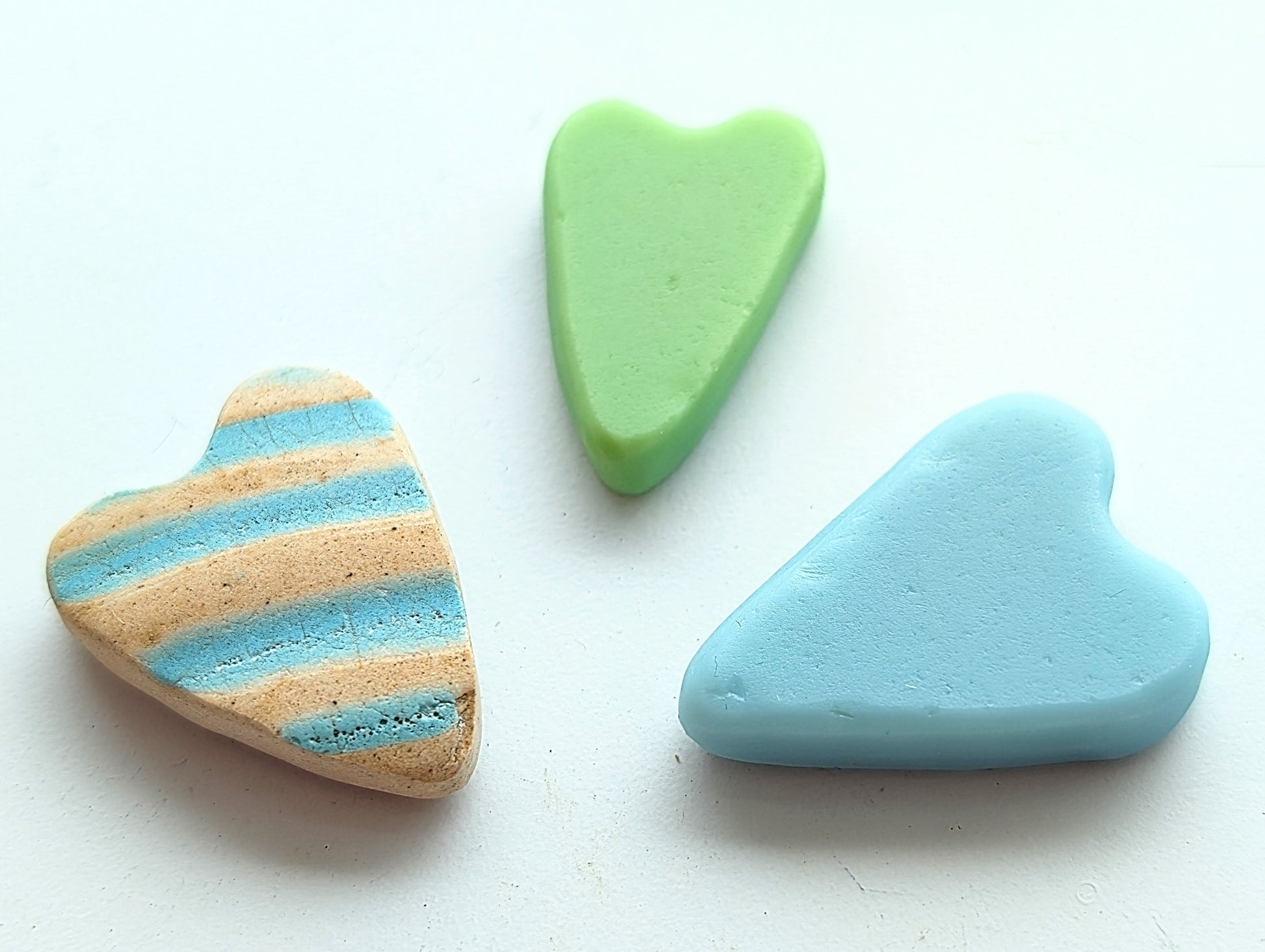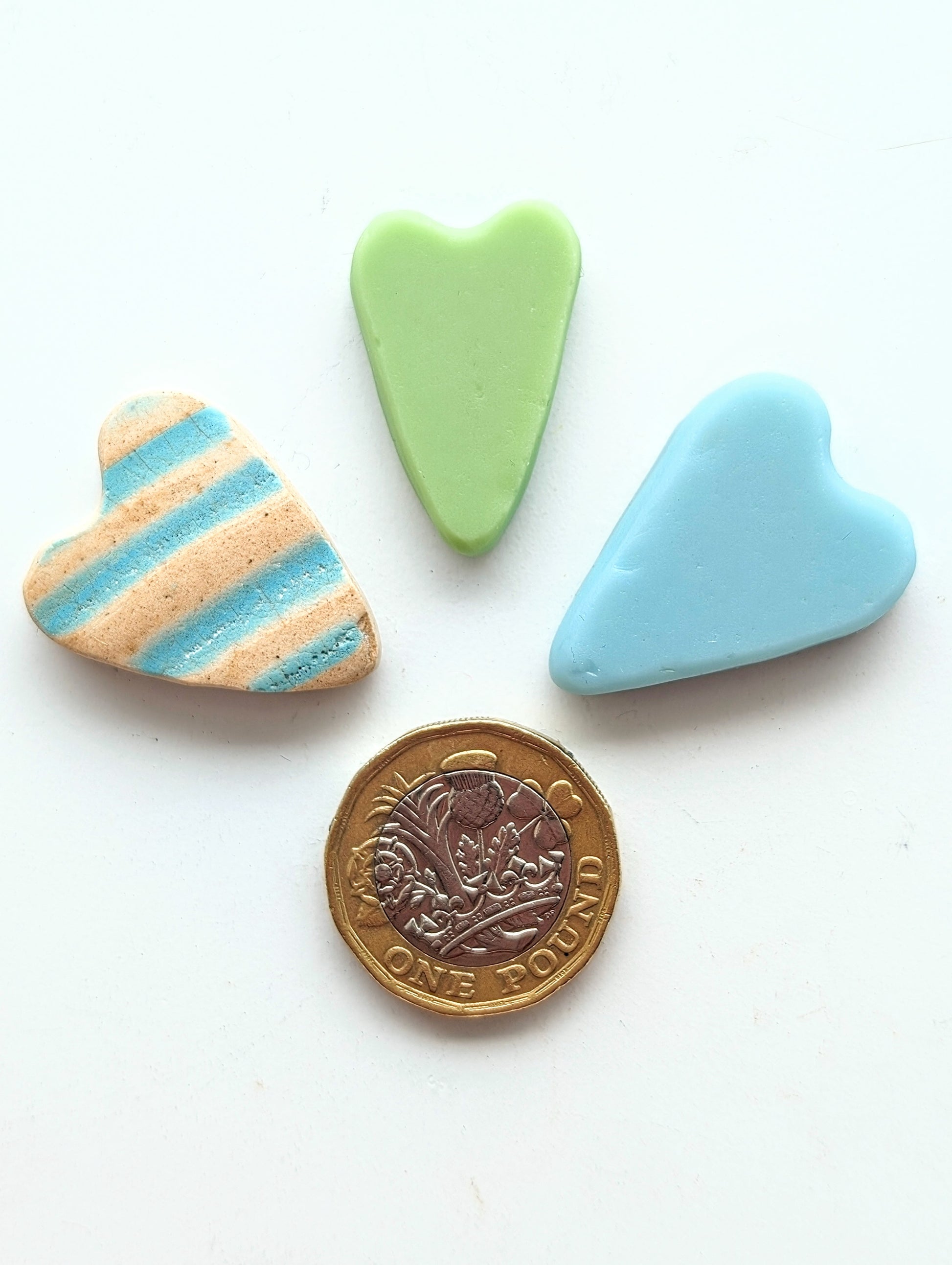 Hand-shaped Edinburgh Sea-Pieces. Sea Glass & Sea Pottery Hearts