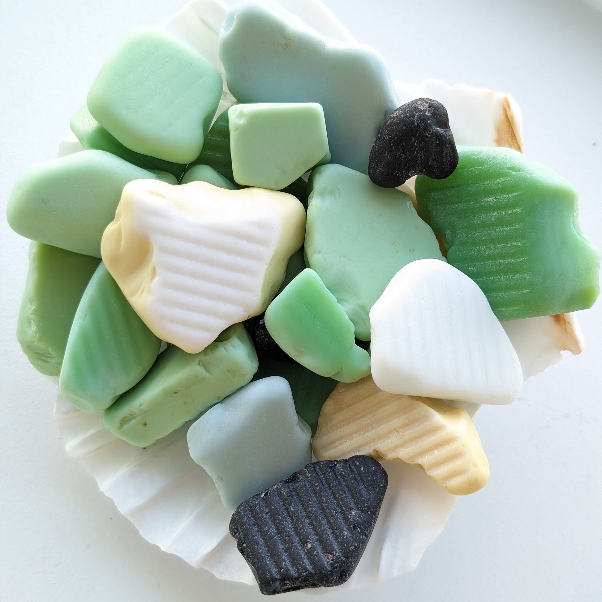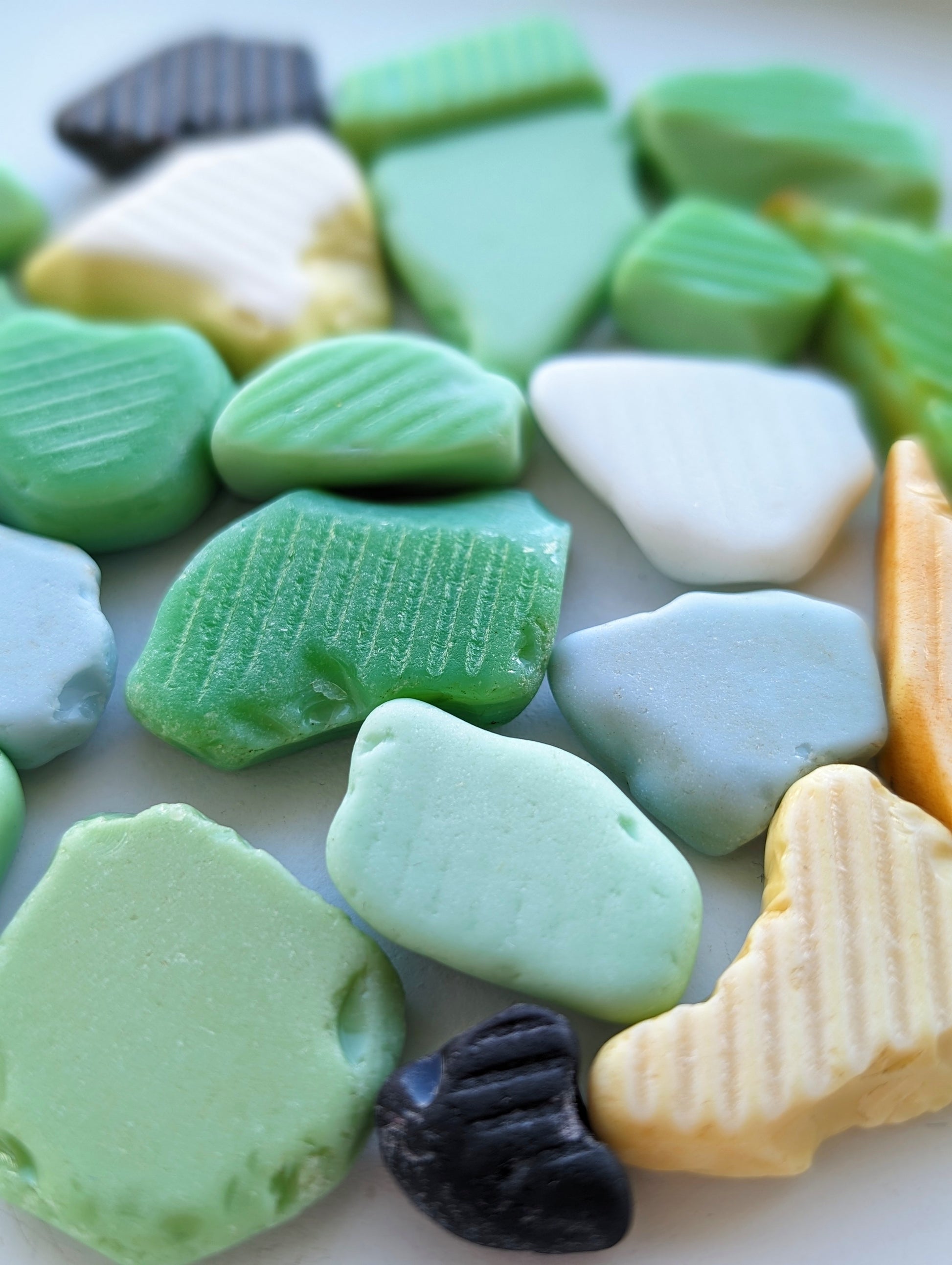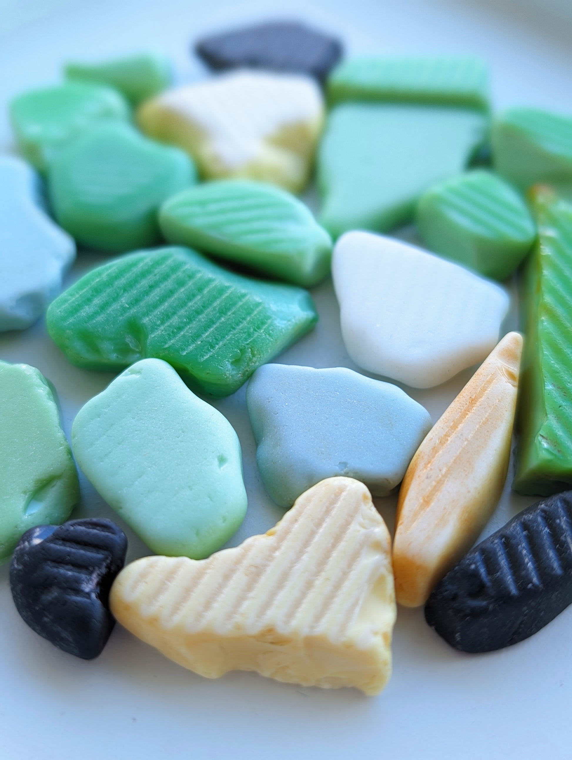 Mixed Vitrolite bundle. Includes blue, green, yellow, white & black vitrolite. All washed up in Edinburgh, Scotland.