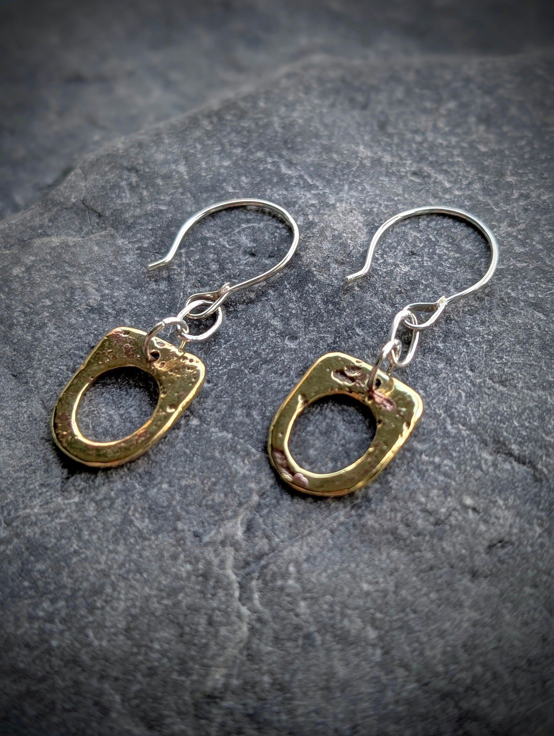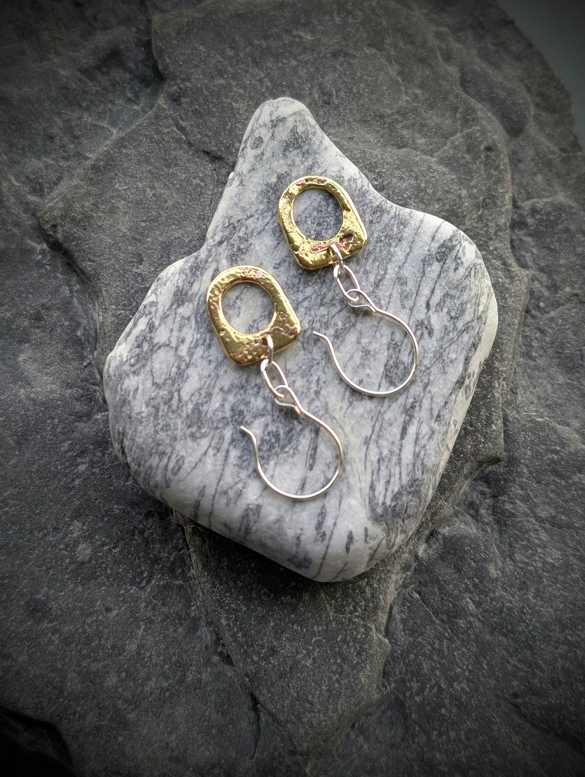 Washed-up Antique Brass & Sterling Silver Earrings
