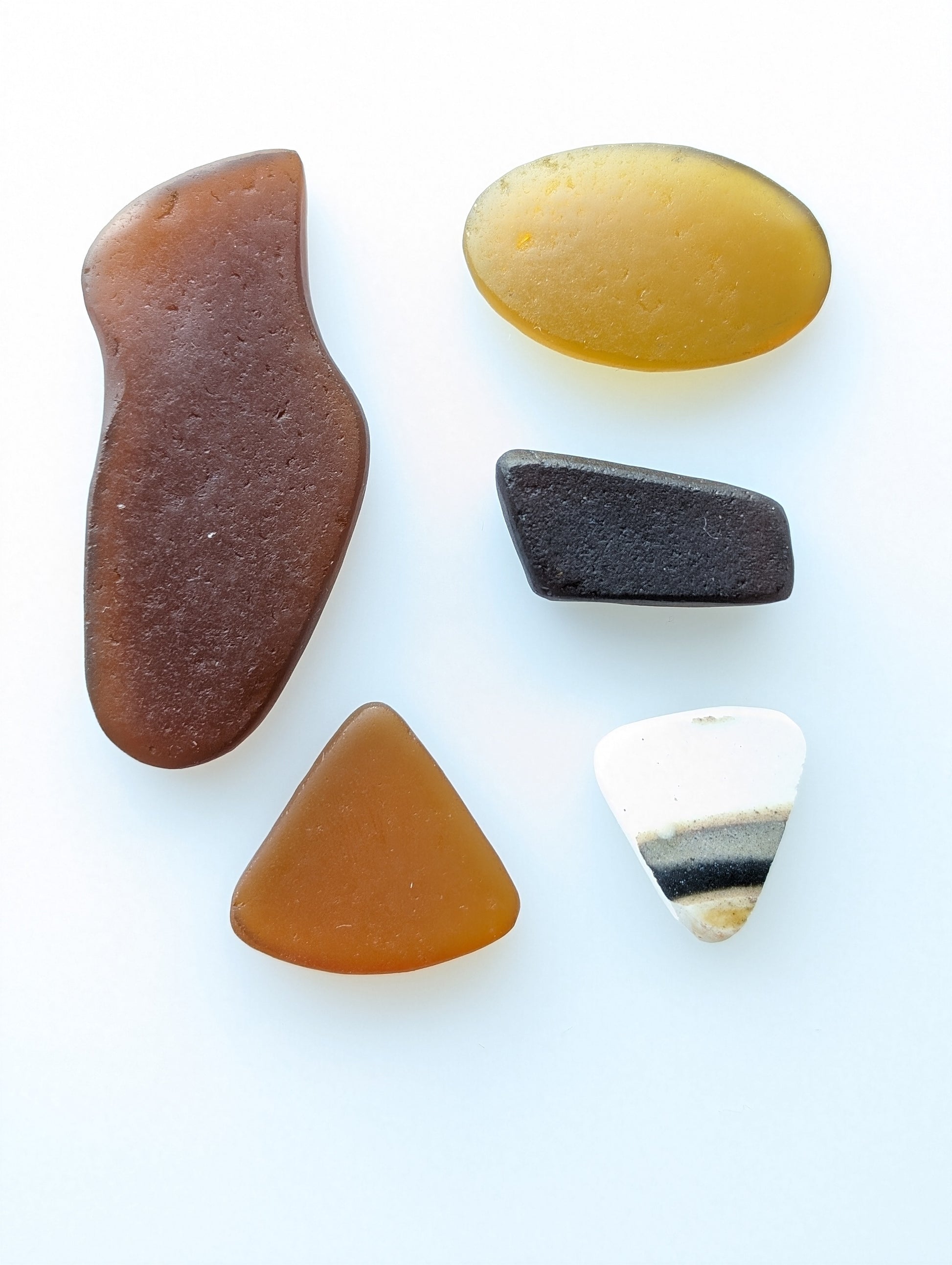 These themed collections of shaped washed up sea glass and sea pottery pieces have been found along the Edinburgh shoreline and hand shaped using a glass grinding machine. Collections are made up of gorgeous wibbly-wobbly, perfectly-imperfect pieces - great for silversmithing, drilling, wire wrapping, mosaics, arts and crafts or simply as pocket treasures. If you let me know what you need them for I can answer any questions to help you work out if they are suitable - curved or flat; single or double-sided; fragile or robust; smooth or rough; even or lumpy. Prices are for the set for the various bundles shown. Other individual pieces, pairs and triple sets, as well as machine tumbled sea glass, are also available so please don't hesitate to get in touch if you are looking for something specific. Commissions may also be possible upon request.